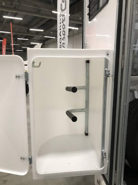 Standard är även individuell underhållsfri fjädring, kraftiga sparkskydd, invändiga och utvändiga uppbindningsöglor, innerbelysning, reservhjul, kraftigt stödhjul och låsbar kulhandske.
