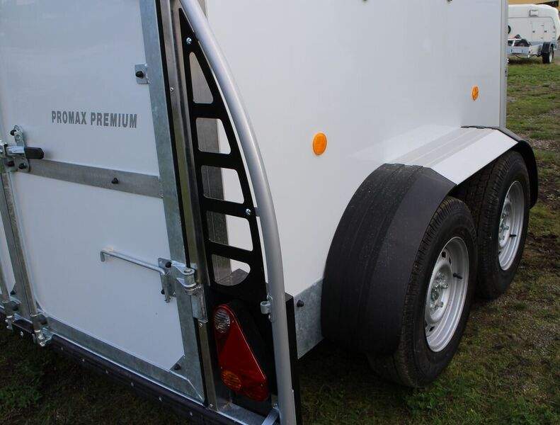 Som standard finns säkerhetsbommar, framfönster, reservhjul, madrasseringar och höga sparkplåtar. Mellanväggen är i starka Fautras Tech som tål tuffa tag och ändå flexar när hästen rör sig vilket ger hästen en inbillad känsla av frihet. Totalvikt 2000 kg, upp till 2600 kg ( hela hundratal) mot ett pristillägg. Innermåtten är B170 H230 L335. Tjänstevikten är ca 1000 kg.