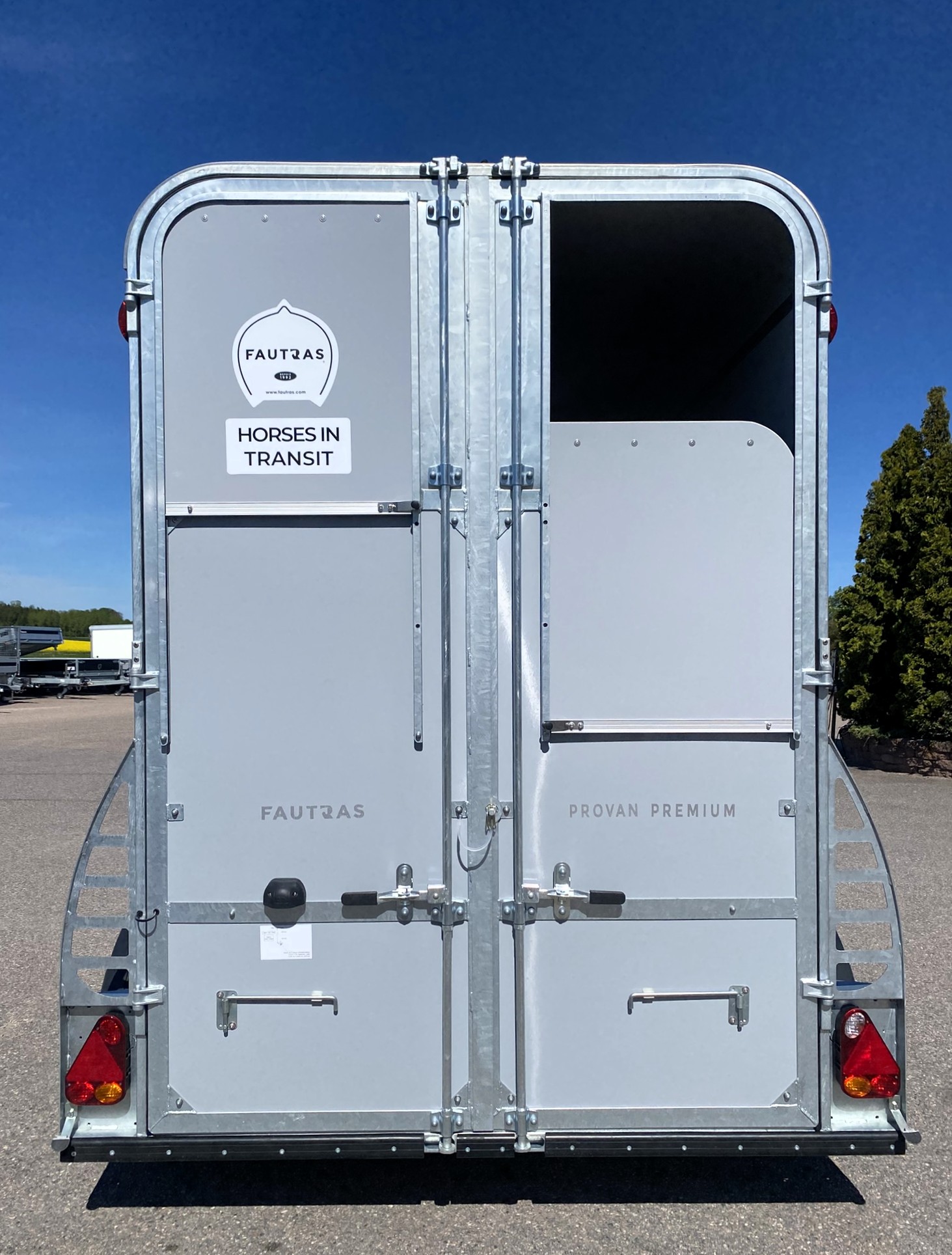 Fautras Provan har plats för två stora hästar och möjlighet att väga in hästtrailern så att du med B-körkort kör detta hästsläp lagligt.